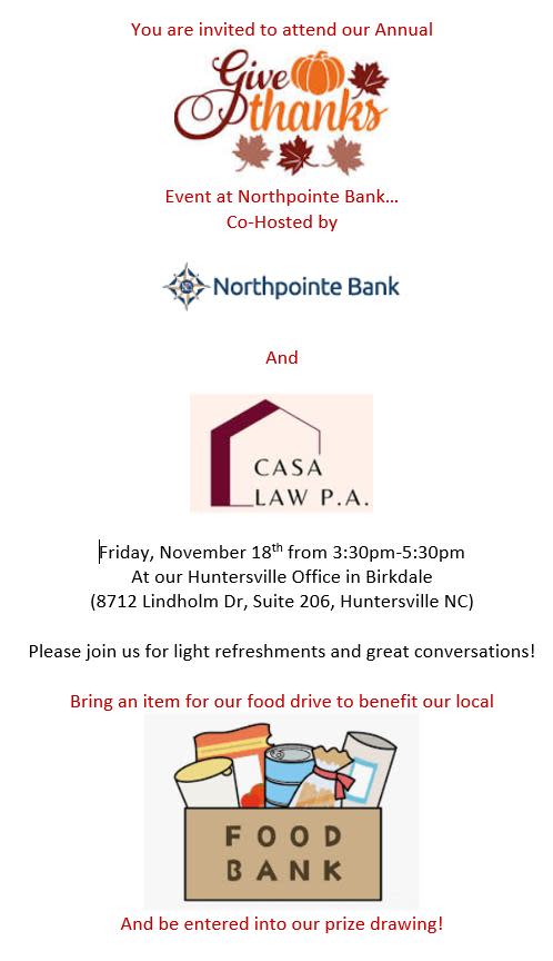Give Thanks Event at Northpointe Bank / Food Drive